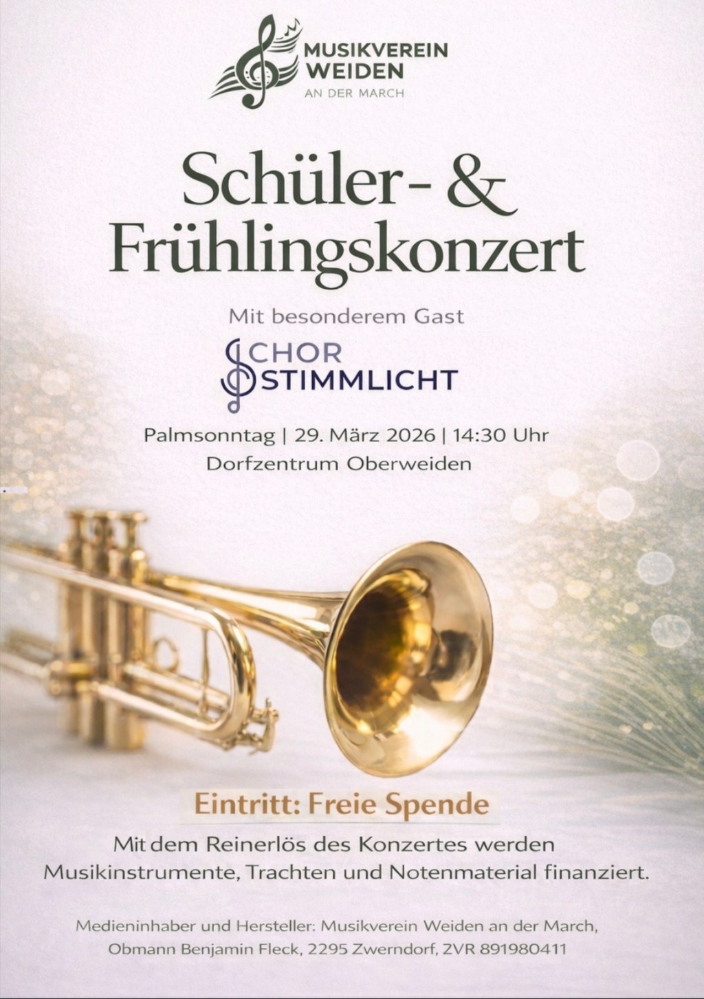 Unser nächstes Konzert steht bereits kurz bevor – und diesmal haben wir etwas ganz Besonderes geplant. Im Rahmen des Frühlingskonzerts des Musikvereins Weiden an der March dürfen auch wir einige Stücke aus unserem Repertoire präsentieren. Außerdem erwarten Sie spannende Collaborations zwischen unserem Chor und dem Musikverein.