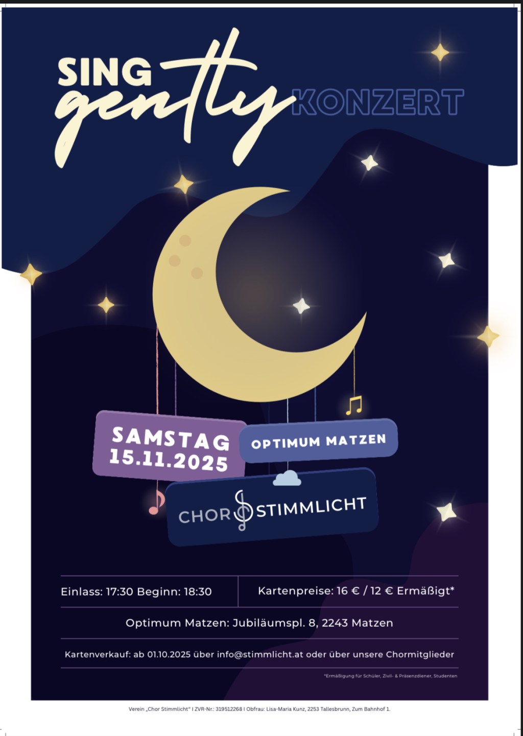 Ab 1. Oktober kannst Du Karten unter info@stimmlicht.at sowie bei unseren Chor-Mitgliedern erwerben.
